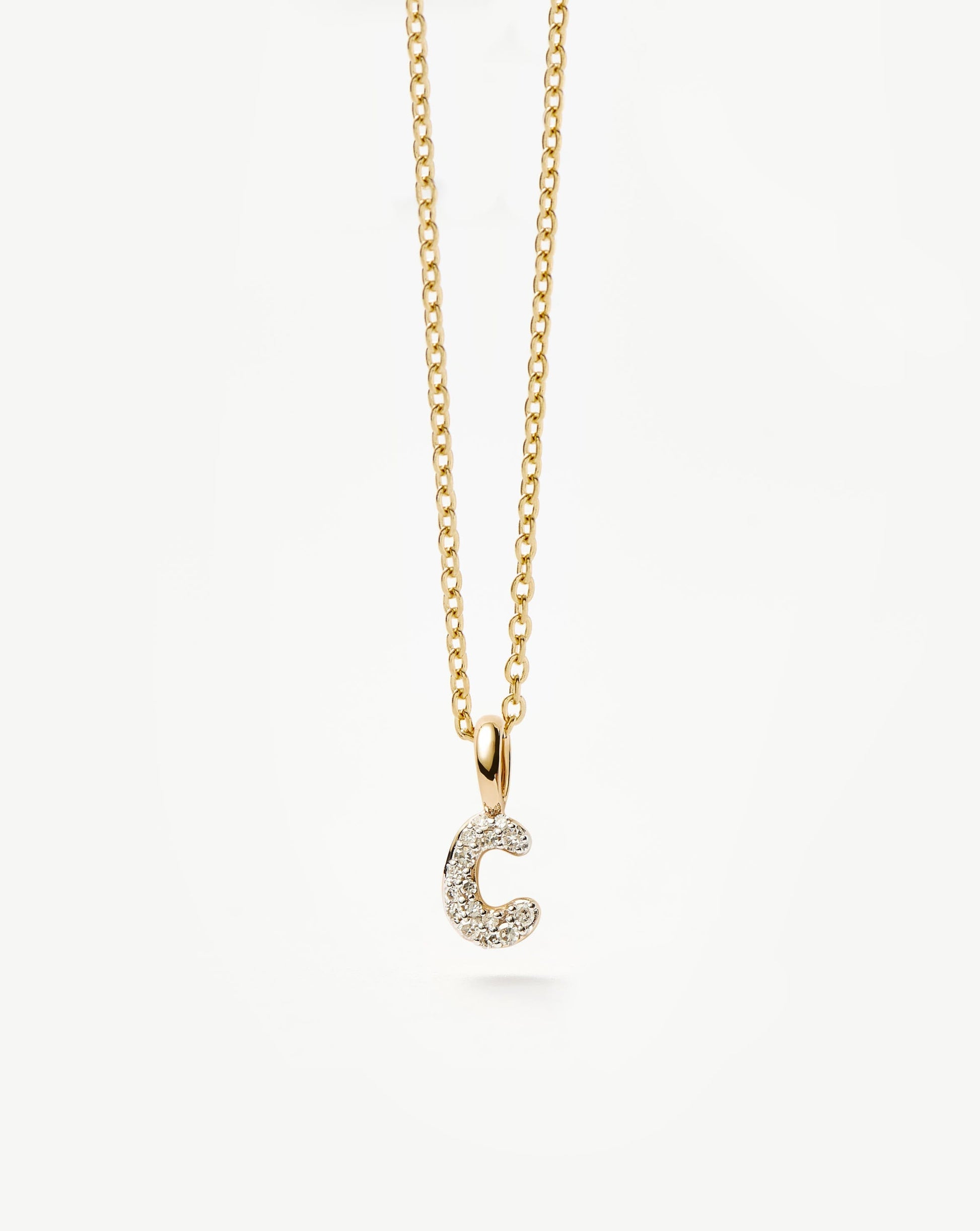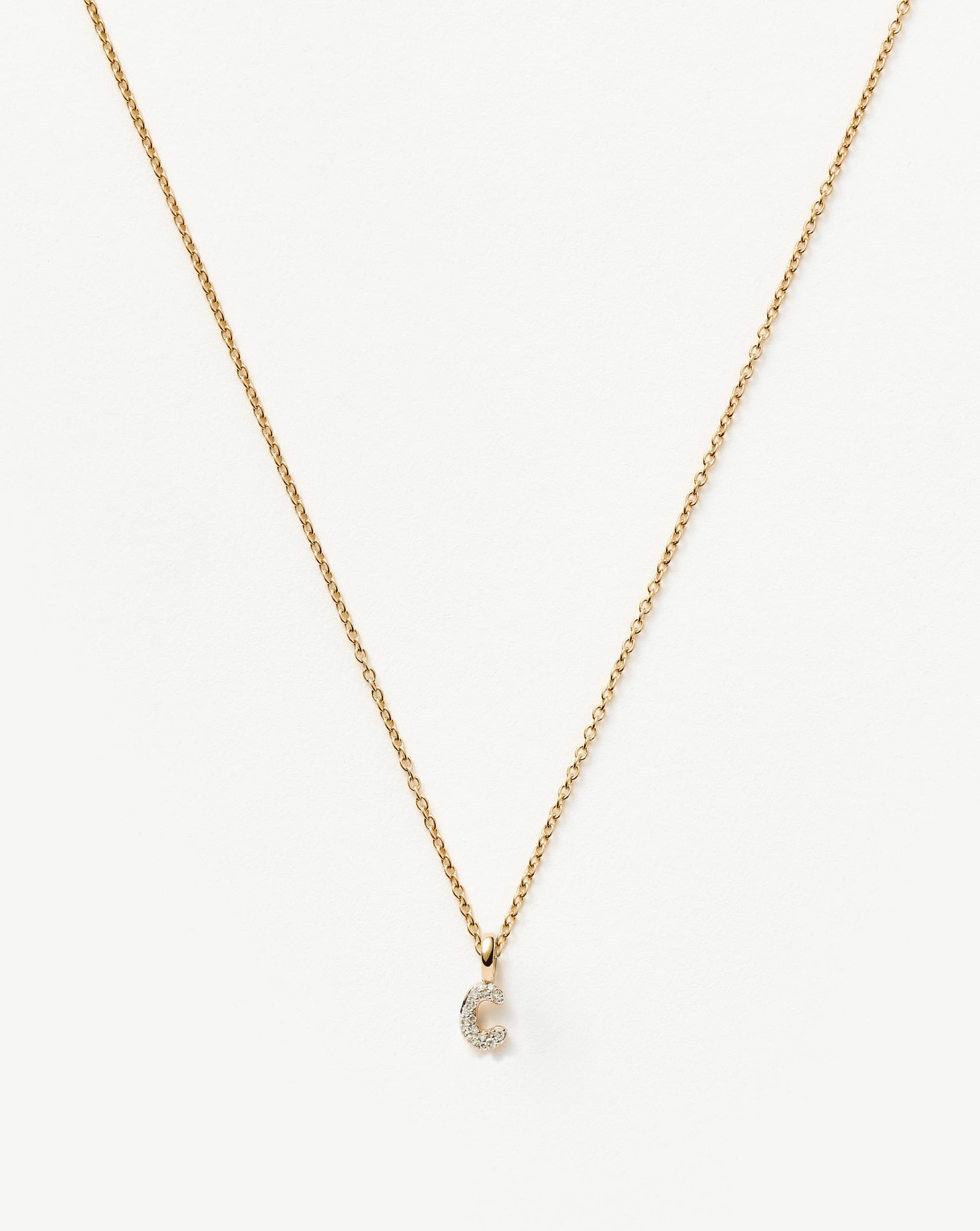Fine Diamond Initial Mini Pendant Necklace - C| 14ct Solid Yellow Gold Plated/Diamond