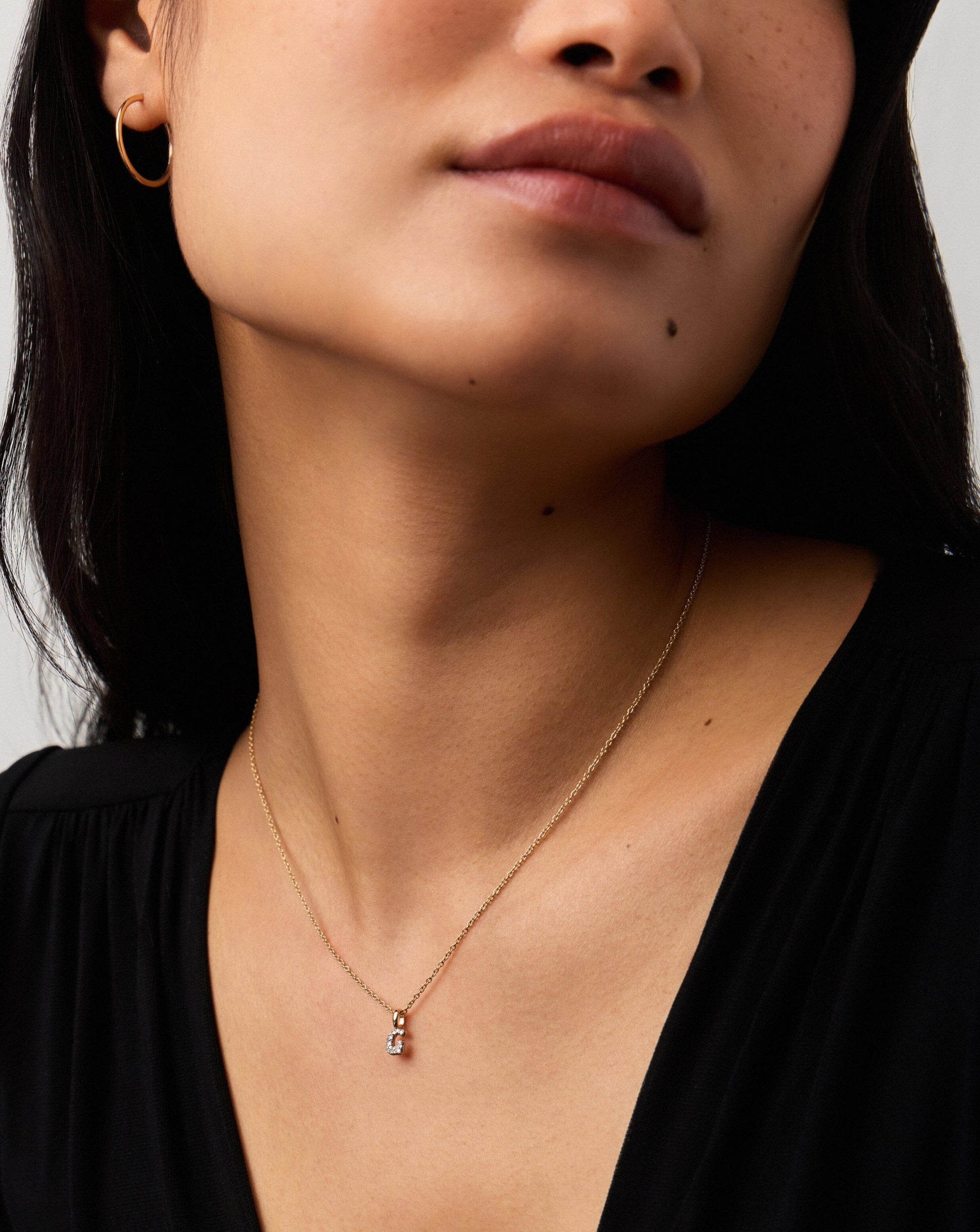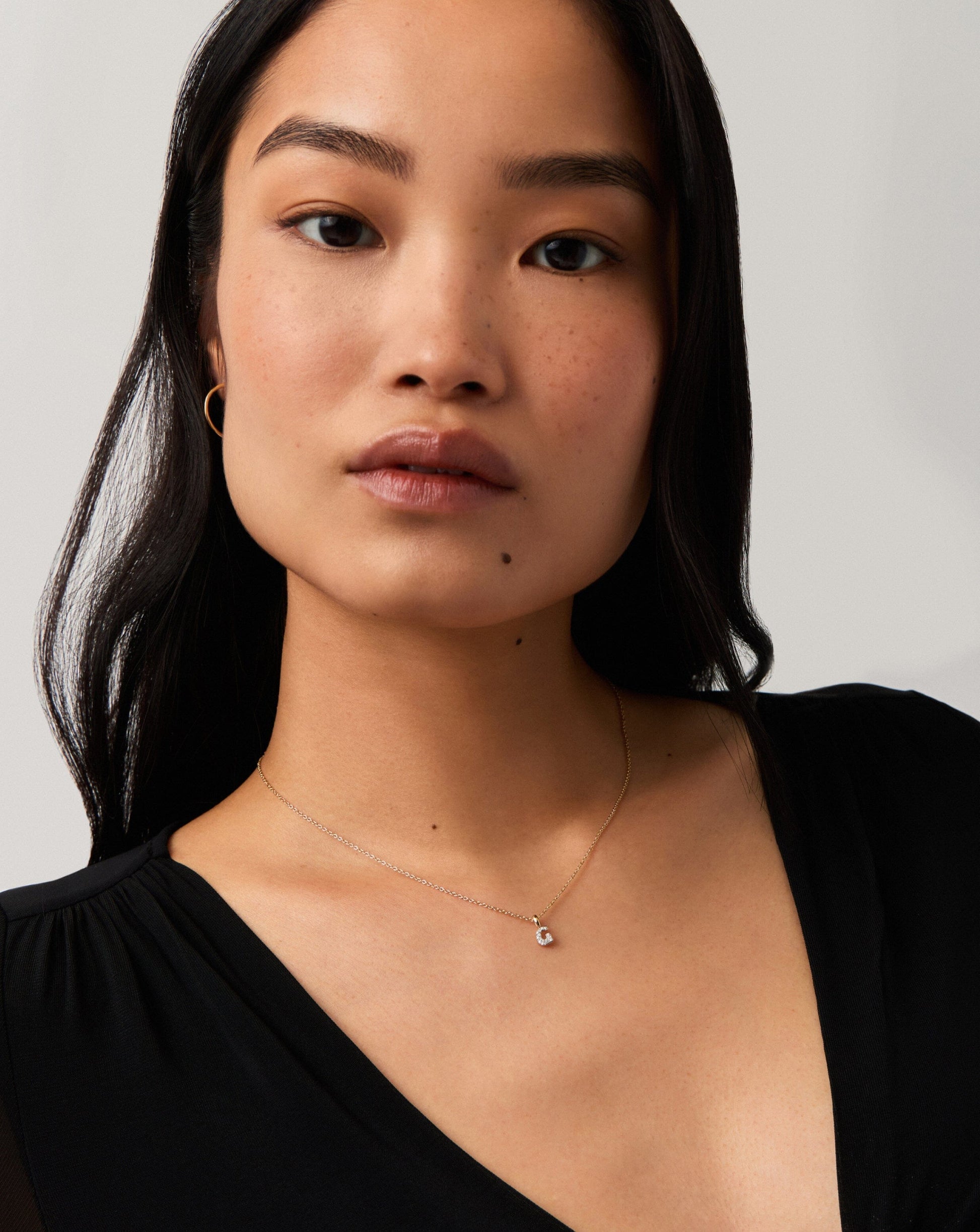 Spell it out in solid gold with a mini initial pendant necklace, featuring your chosen letter in a soft hand-drawn font and pave set white diamonds. A forever layering piece, keep it for yourself or give as the ultimate personalised gift.