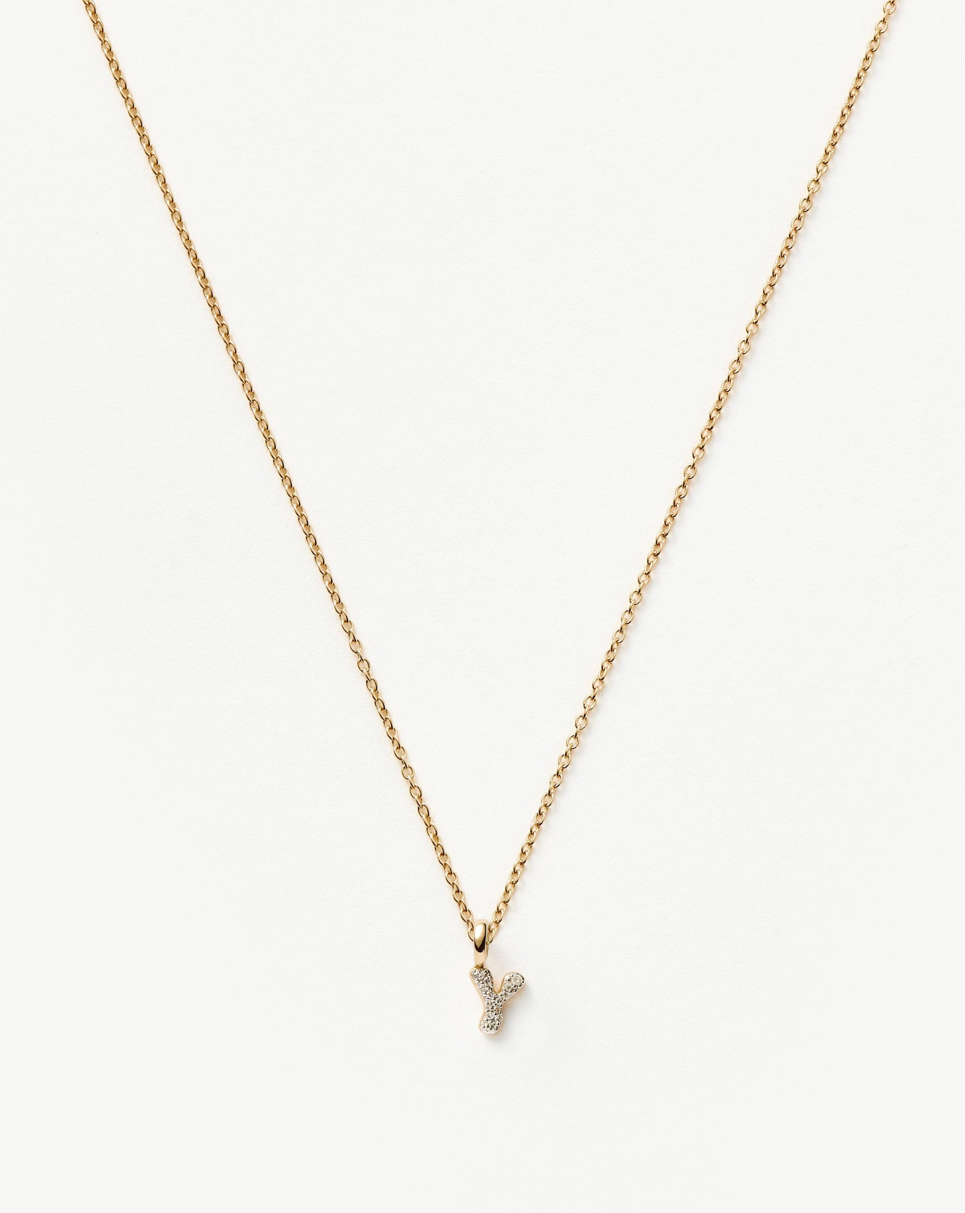 Fine Diamond Initial Mini Pendant Necklace - Y | 14ct Solid Yellow Gold Plated/Diamond