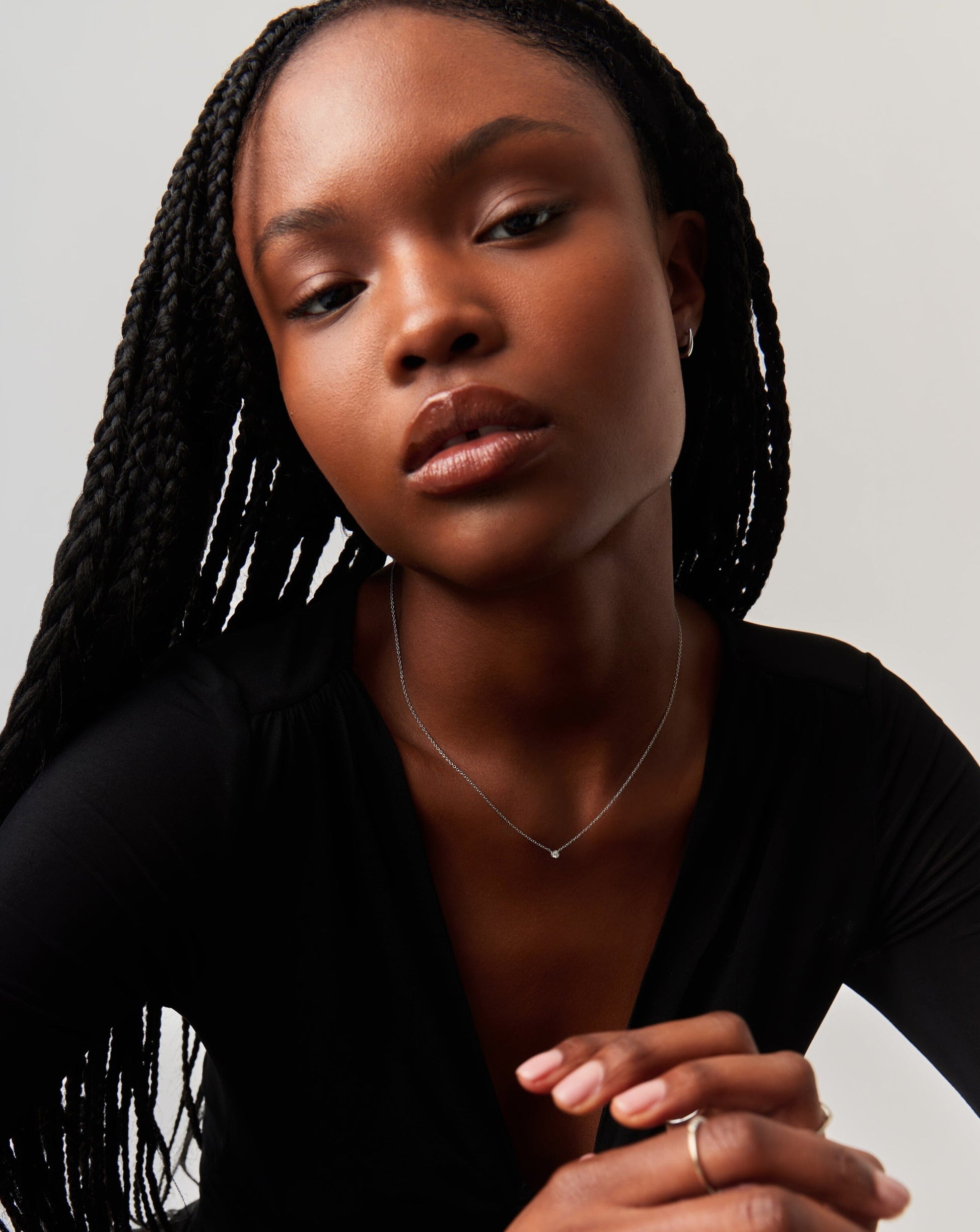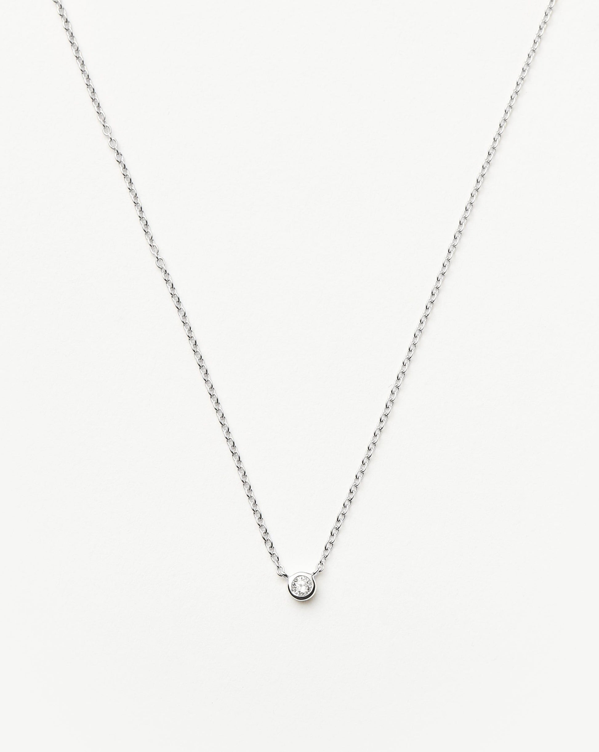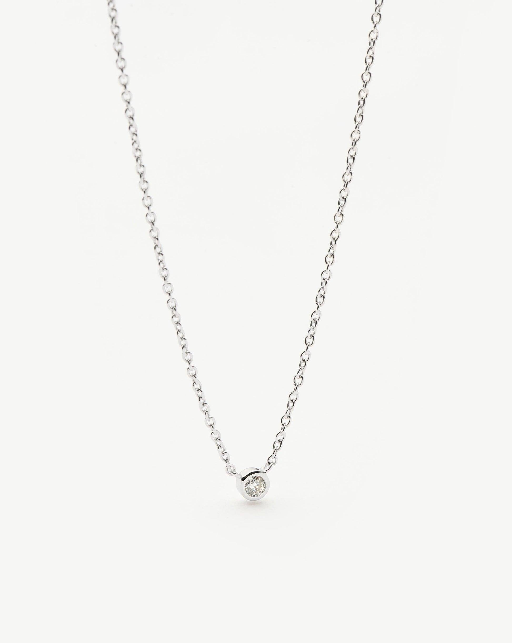 This timeless necklace features a floating solitaire diamond in a bezel setting on a classic 14ct solid white gold chain. Wear solo or layer with more fine chains.